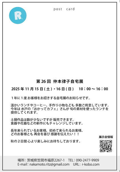 *ハガキをご希望の方は「問い合わせ」からご住所をお知らせ